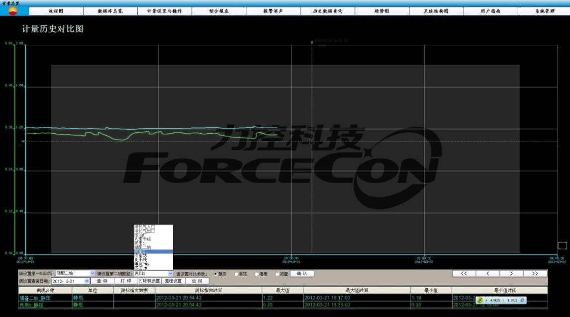 為方便操作人員查看及分析生產趨勢,本系統包含實時曲線和歷史曲線相互切換的功能,同時操作人員可以根據自身需要選擇兩個或者多個數據進行趨勢對比,為生產調度提供可靠依據。