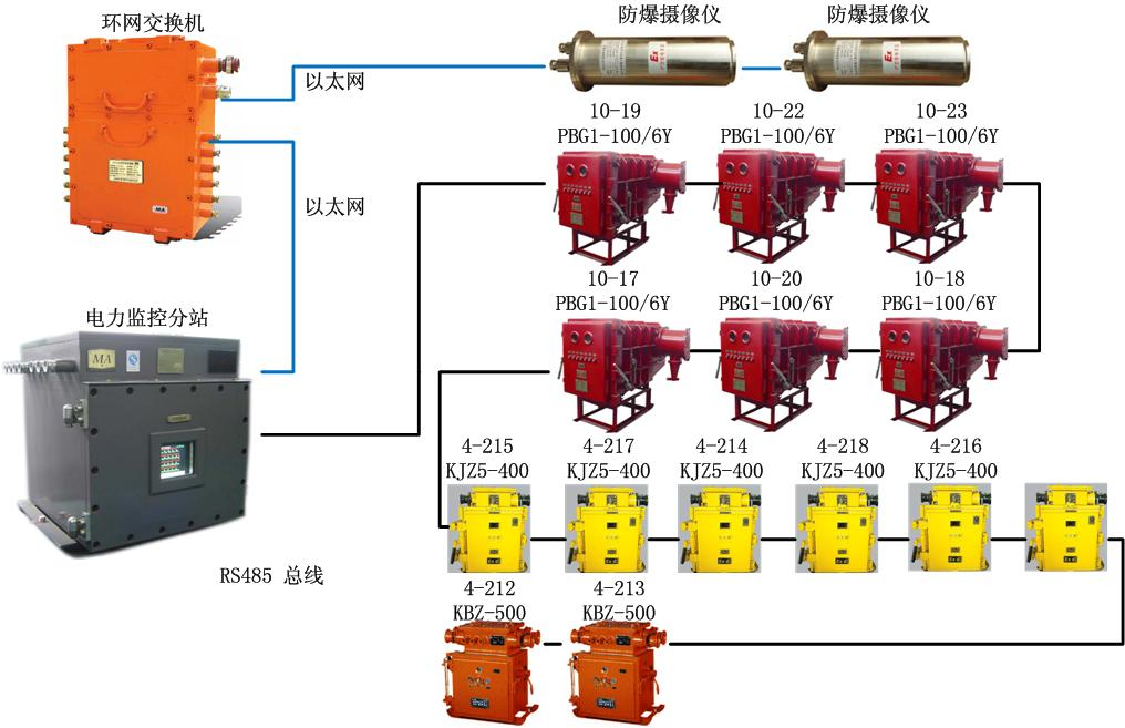 系統采用工業以太網加現場總線的結構模式。主干信道是光纖工業以太網環網到各變電所,為每個變電所設置一臺通訊管理機,監控分站采用RS485現場總線方式與各微機綜合保護裝置或智能采集模塊相連,采集變電所開關設備的運行參數和狀態,實現就地集中數據監測和設備控制的功能。同時通訊管理機對采集到的信息進行處理、轉換,通過以太網環網平臺集中上傳到系統后臺主機。