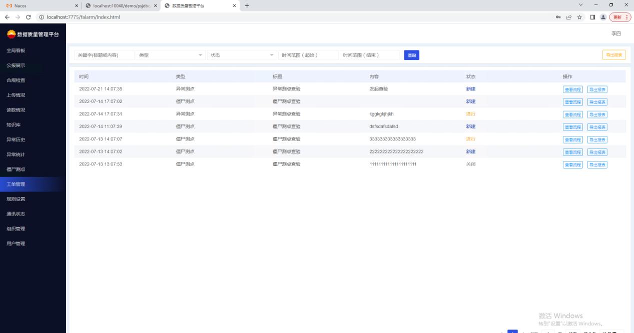 僵尸測點的來源通過定下的規則,判斷為僵尸測點后,顯示在“僵尸測點”的界面中,界面展示了該測點的點名、描述、首次檢測時間、檢測次數和當前狀態。可通過左上角查詢條件查詢出一個時間段的僵尸測點。