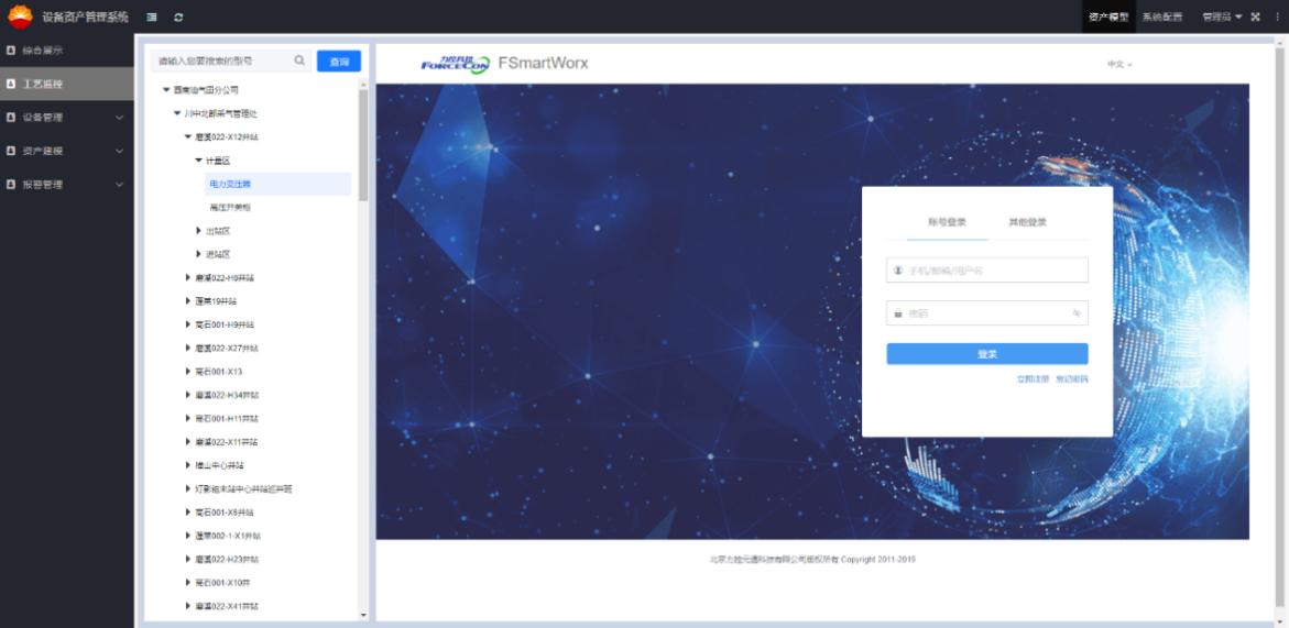 根據集團公司結構進行樹形展示,根據樹形展示選擇對應場站可以在右邊顯示出對應場站的流程圖,該功能只要是可以直觀的查看出當前場場站的設備運行狀態。