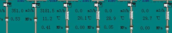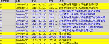 模擬量數(shù)據(jù)在水處理監(jiān)控系統(tǒng)主監(jiān)控畫面中都已顯示出來,包含文字說明和單位,其中液位還以圖形化百分比填充方式顯示液位的變化,非常直觀,當該模擬量如液位發(fā)生超限(低于低限和高于高限時)時將報警,以畫面閃爍和聲音方式提示控制室值班人員。