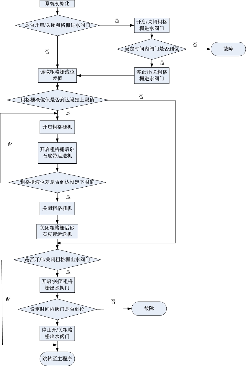細(xì)格柵的間距比粗格柵小,為4mm,主要作用是進(jìn)一步攔截污水中的污物。需要檢測格柵水位差、流量、泵狀態(tài)等參數(shù)。