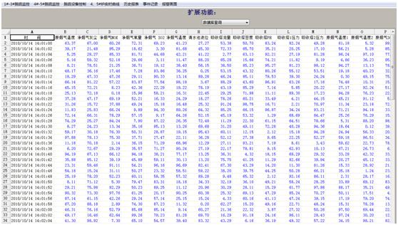 力控報表開發(fā)工具提供豐富的報表操作函數(shù)集、支持復(fù)雜腳本控制,包括腳本調(diào)用和事件腳本。比如利用報表函數(shù)可以在報表上同時顯示實時數(shù)據(jù)和任意時刻的歷史數(shù)據(jù),并加以統(tǒng)計處理,取行平均、列平均,統(tǒng)計出最大最小值;以表格的形式成組地顯示運行參數(shù)和相關(guān)參數(shù)。列表顯示可依據(jù)用戶需要在每頁中配置自己所要監(jiān)視的參數(shù),其特點是:一、可以分組顯示參數(shù),如常用參數(shù)列表、模擬量參數(shù)列表、計算量參數(shù)列表、開關(guān)量參數(shù)列表等,便于監(jiān)視試驗過程;二、可以分類顯示相關(guān)參數(shù),如溫度、壓力、二氧化硫量等,便于分析相關(guān)參數(shù)間的相互影響關(guān)系。
