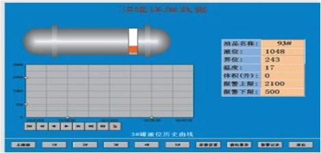 4)歷史數(shù)據(jù)查詢(xún)與管理:可以曲線(xiàn)的形式顯示各監(jiān)測(cè)參數(shù)隨時(shí)間變化的曲線(xiàn),同時(shí)對(duì)最大最小值及平均值進(jìn)行顯示。實(shí)時(shí)計(jì)算和顯示油庫(kù)油品存量,用棒圖和數(shù)據(jù)表顯示所有油品的即時(shí)存量和空容量、體積、質(zhì)量。在無(wú)進(jìn)出油品的狀態(tài)下,可判斷油罐有無(wú)泄漏。