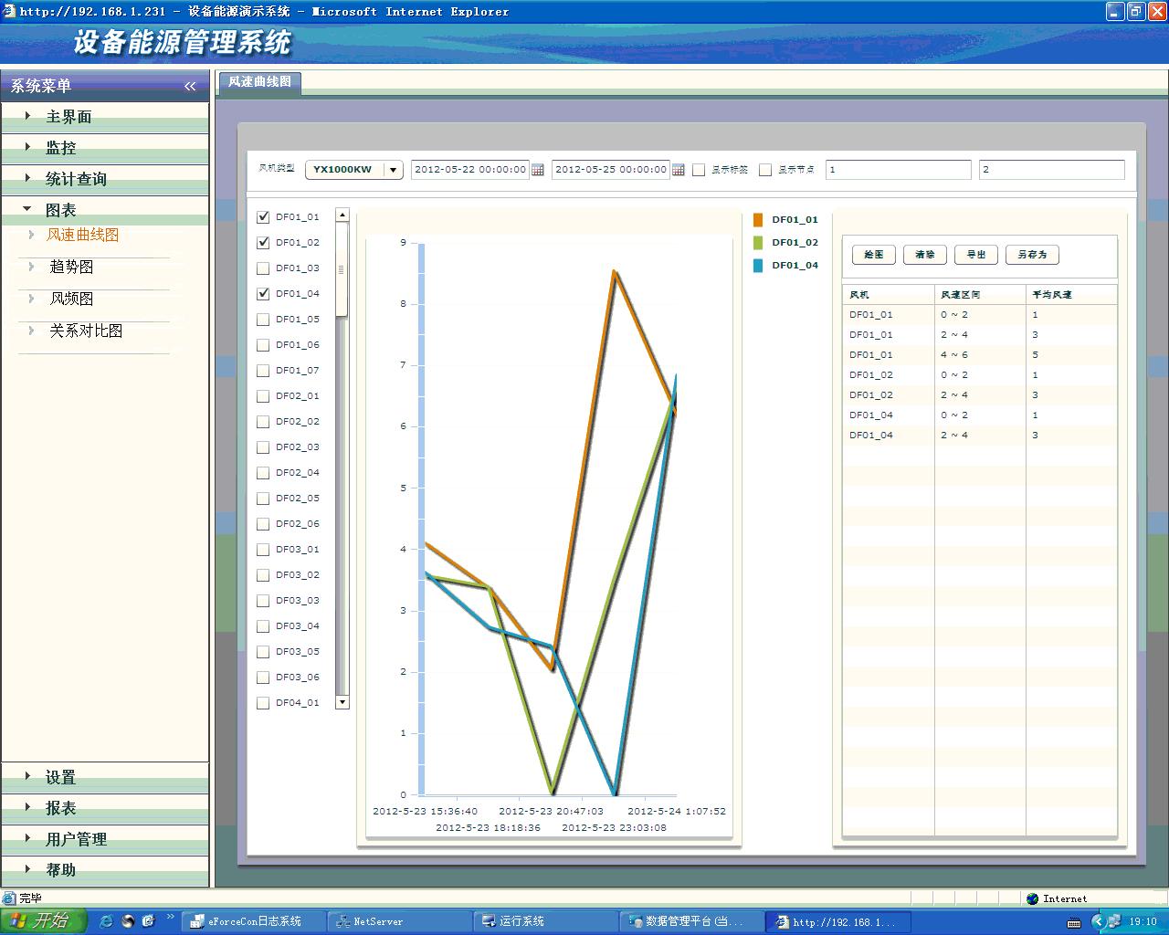 1)風(fēng)速曲線圖:根據(jù)設(shè)定時(shí)間段、數(shù)據(jù)差值,描繪風(fēng)速變化軌跡,并根據(jù)設(shè)定起始風(fēng)速及區(qū)間,自動(dòng)統(tǒng)計(jì)于右側(cè)表格。