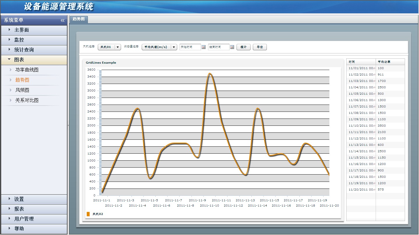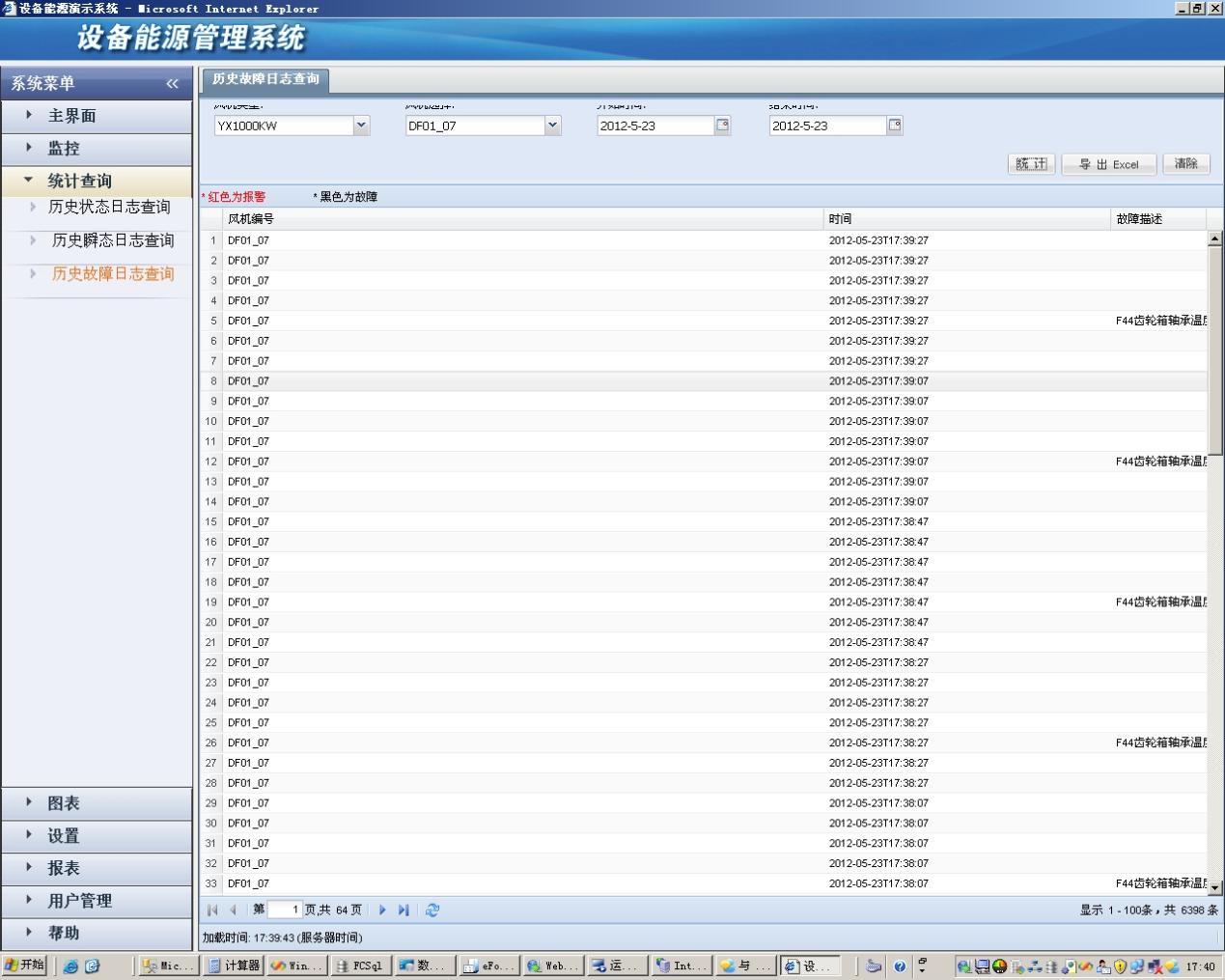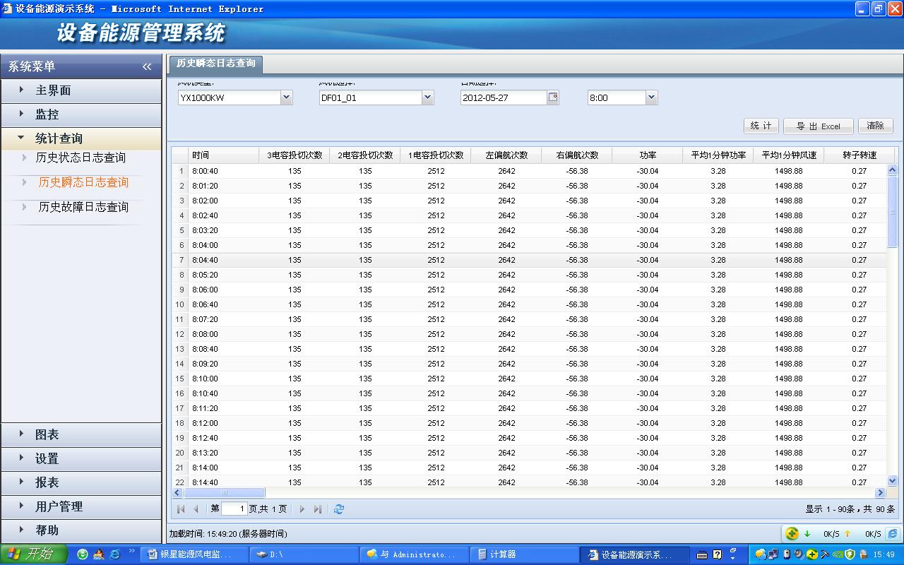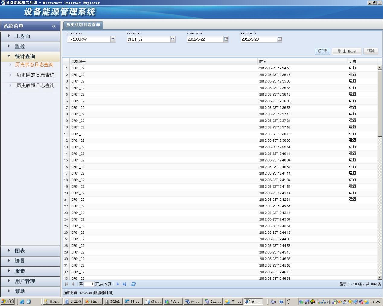 1) 歷史狀態(tài)日志查詢:根據(jù)選擇風(fēng)機(jī)及時(shí)間段,查詢風(fēng)機(jī)的歷史工作狀態(tài)。