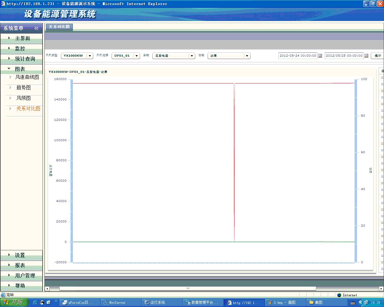 4)關(guān)系對(duì)比圖:在同一曲線控件內(nèi)同時(shí)顯示兩個(gè)不同變量在同一時(shí)間段內(nèi)的線性對(duì)比關(guān)系。