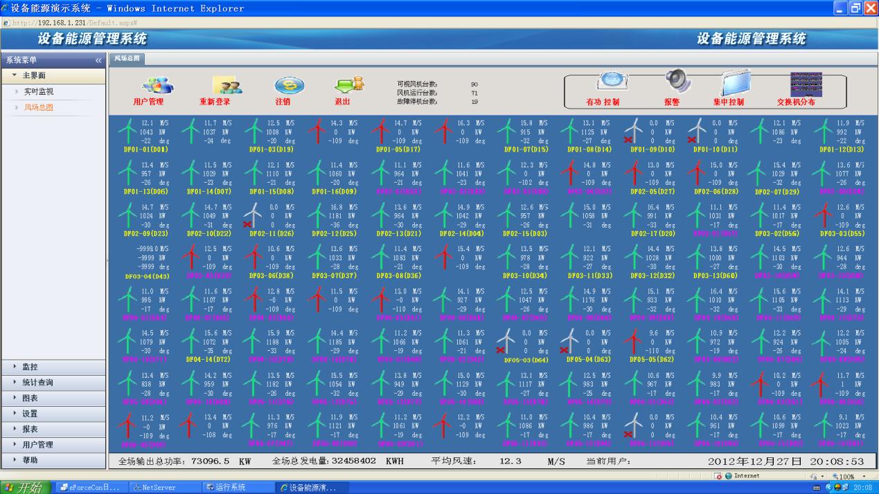4) 實(shí)時(shí)控制風(fēng)場(chǎng)內(nèi)所有風(fēng)機(jī)的啟動(dòng)、停止、復(fù)位等功能。