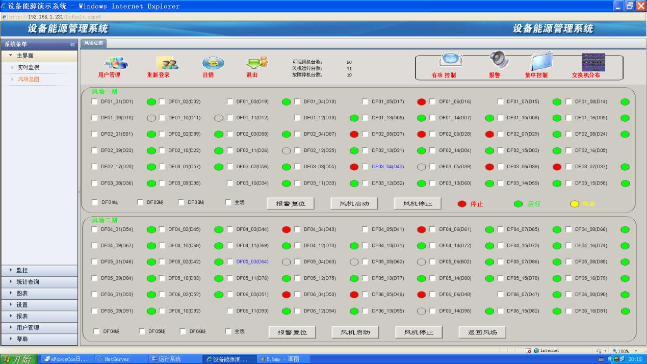可以根據(jù)生產(chǎn)需求,實(shí)現(xiàn)對(duì)單臺(tái)、回路、及全部風(fēng)機(jī)進(jìn)行,故障復(fù)位、遠(yuǎn)程停機(jī)及遠(yuǎn)控啟動(dòng)操作,方便對(duì)風(fēng)機(jī)的集中管理。并可根據(jù)電網(wǎng)實(shí)時(shí)參數(shù),外部氣象條件參數(shù),按照設(shè)定好的控制策略,實(shí)現(xiàn)對(duì)風(fēng)機(jī)啟停、復(fù)位的遠(yuǎn)程控制。