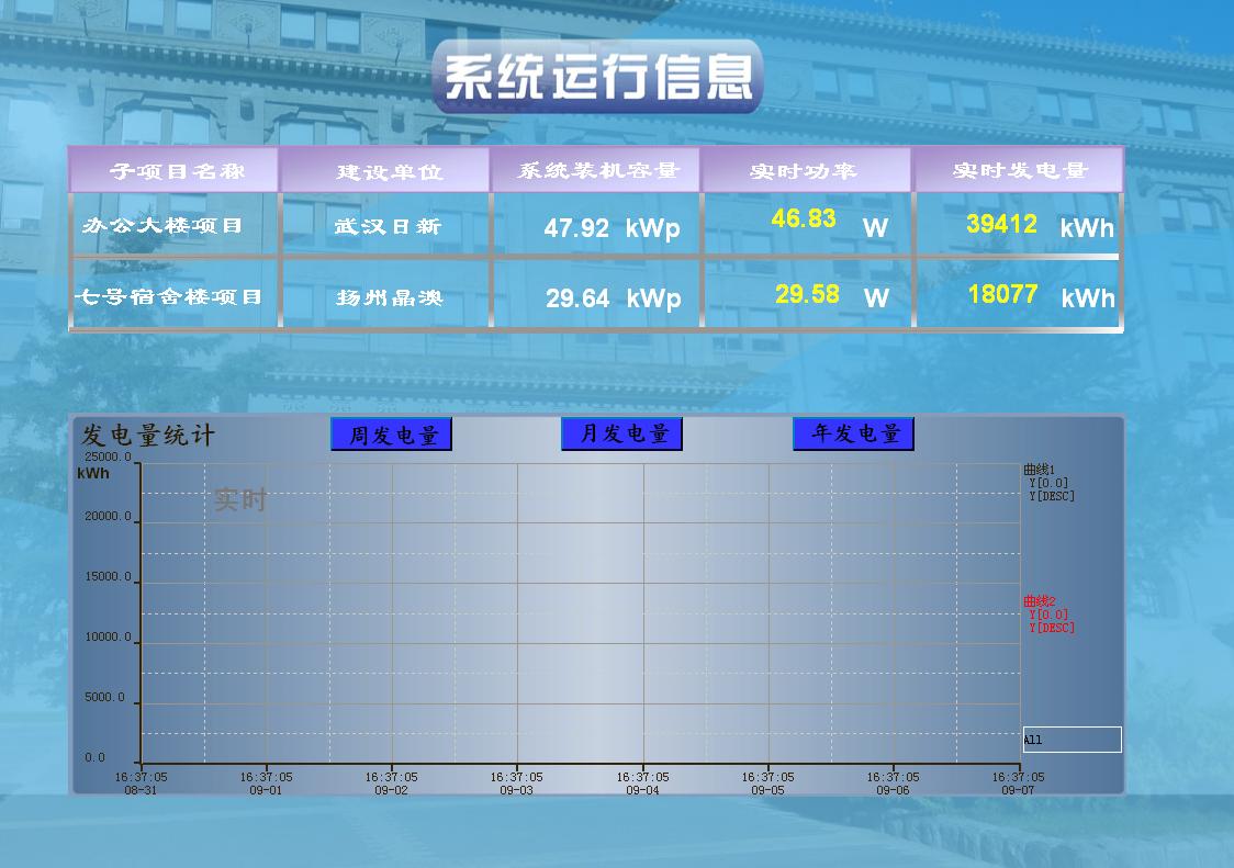 2)系統顯示各臺逆變器/通信模塊的運行數據。如每臺逆變器/通信模塊的瞬時發電功率、累計發電量、發電小時數、輸入輸出的電壓、電流、功率等,將下位機的數據調入上位機并在顯示器上顯示,必要時還可以用曲線或圖表的形式直觀地顯示出來。