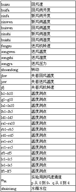 空調(diào)箱組成:回風(fēng)段、新風(fēng)段、表冷段、加濕段、電加熱段、送風(fēng)段。注:機組使用回風(fēng)機和送風(fēng)機兩臺風(fēng)機,在送風(fēng)段之后裝有噴嘴流量計。空調(diào)箱使用的冷媒為冷熱水機組提供的冷熱水。