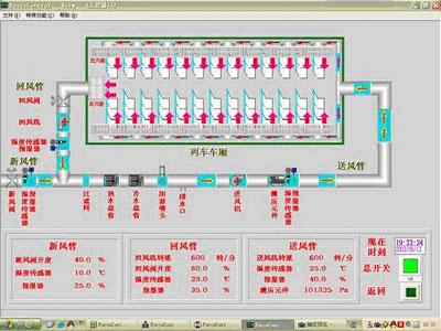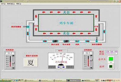 這套系統(tǒng)所用軟件為力控監(jiān)控組態(tài)軟件ForceControl,主要模擬列車車廂和夾套的空調(diào)工況,以及設(shè)計完全針對實驗臺的溫度、風(fēng)速的實時檢測和報表系統(tǒng)。