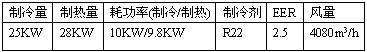 選用三菱重工海爾RFU25WD型風(fēng)管機兩臺,室內(nèi)機組的冷媒為室外機組的制冷劑 。其部分參數(shù)如下: