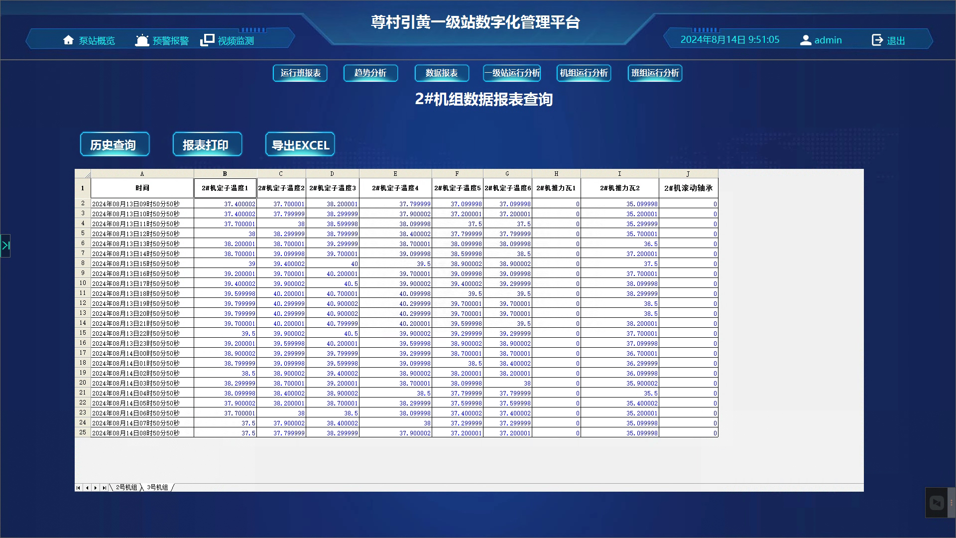 機(jī)組檔案包括機(jī)組運(yùn)行數(shù)據(jù)、泵站運(yùn)行數(shù)據(jù)、設(shè)備維修記錄等,支持查詢和導(dǎo)出至本地excel文件,方便資料記錄。