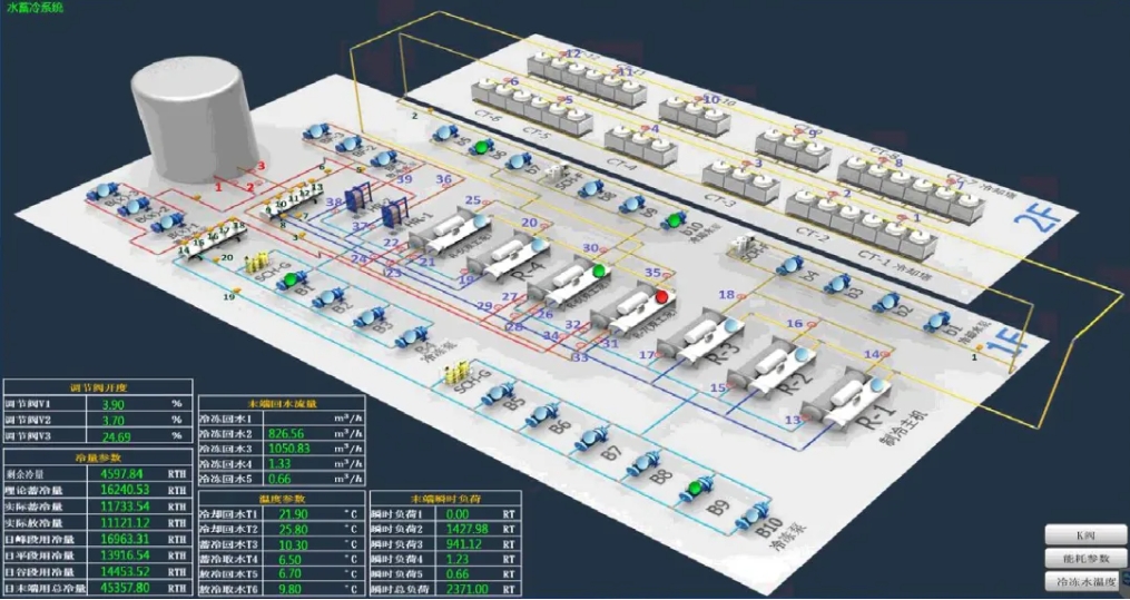 * 內(nèi)置可視化工具,在B端瀏覽器快速搭建半導(dǎo)體廠務(wù)渲染圖、工藝流程圖(如:MAU系統(tǒng)、冰機(jī)監(jiān)控等),替代傳統(tǒng)HMI,多人協(xié)同提升組態(tài)效率。 * 可視化大屏適用于半導(dǎo)體工廠的指揮中心或展廳展示。