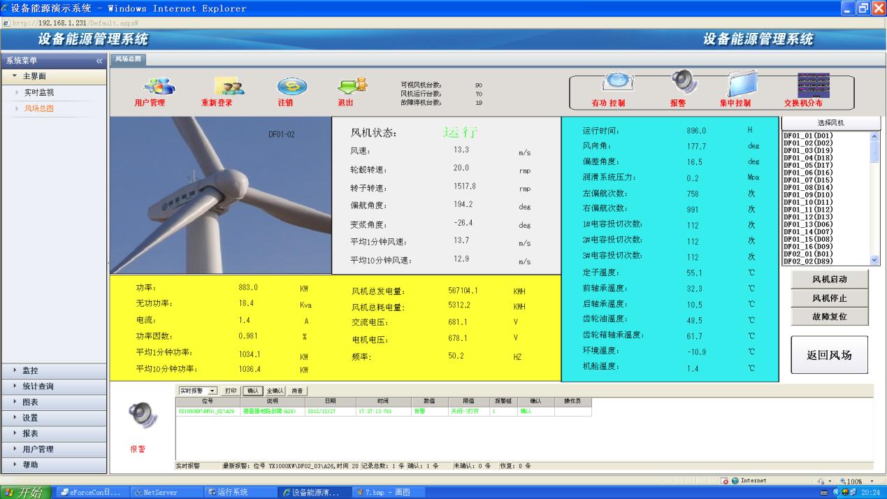 寧夏銀儀風(fēng)電場(chǎng)升壓站總裝機(jī)99MW。系統(tǒng)可實(shí)時(shí)顯示風(fēng)機(jī)數(shù)據(jù)、故障,遠(yuǎn)程控制風(fēng)機(jī),提供數(shù)據(jù)統(tǒng)計(jì)查詢、風(fēng)勢(shì)圖及有功功率跟蹤控制,提高運(yùn)維效率,降低成本。