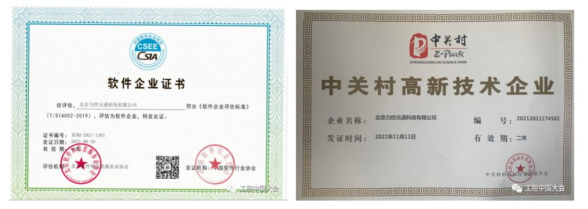 力控科技是北京市高新技術和軟件企業、北京市核心競爭力企業、北京市“專精特新”中小企業、中關村瞪羚企業。獲得了軟件能力成熟度CMMI3級認證、電子與智能化工程專業承包資質二級、ISO9001質量管理體系認證證書、信息系統建設和服務能力等級證書(CS2)等多項資質認證。
