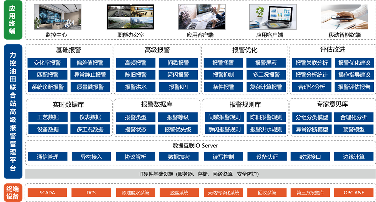 力控油田聯(lián)合站高級報警管理平臺通過實時歷史報警監(jiān)測、復雜規(guī)則配置、報警智能分析,將聯(lián)合站各系統(tǒng)報警數(shù)據(jù)統(tǒng)一接入管理應用,實現(xiàn)生產(chǎn)過程風險的動態(tài)監(jiān)測與分析、預警與管控,有效降低無效報警數(shù)量,及時發(fā)現(xiàn)和處理設備潛在安全隱患,為聯(lián)合站的安全運行提供強有力的保障。