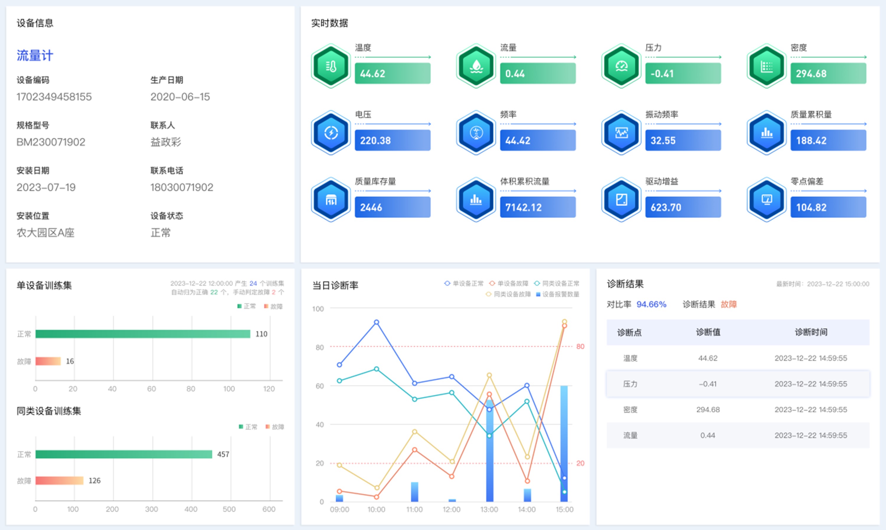 訓(xùn)練集按照單設(shè)備、同類設(shè)備兩個維度訓(xùn)練形成健康診斷模型,基于設(shè)備實時數(shù)據(jù)采集和訓(xùn)練模型進(jìn)行故障預(yù)測,提前發(fā)現(xiàn)并提醒設(shè)備運轉(zhuǎn)過程異常,實現(xiàn)設(shè)備預(yù)防性維修,保障生產(chǎn)安全,避免因設(shè)備故障產(chǎn)生安全隱患。