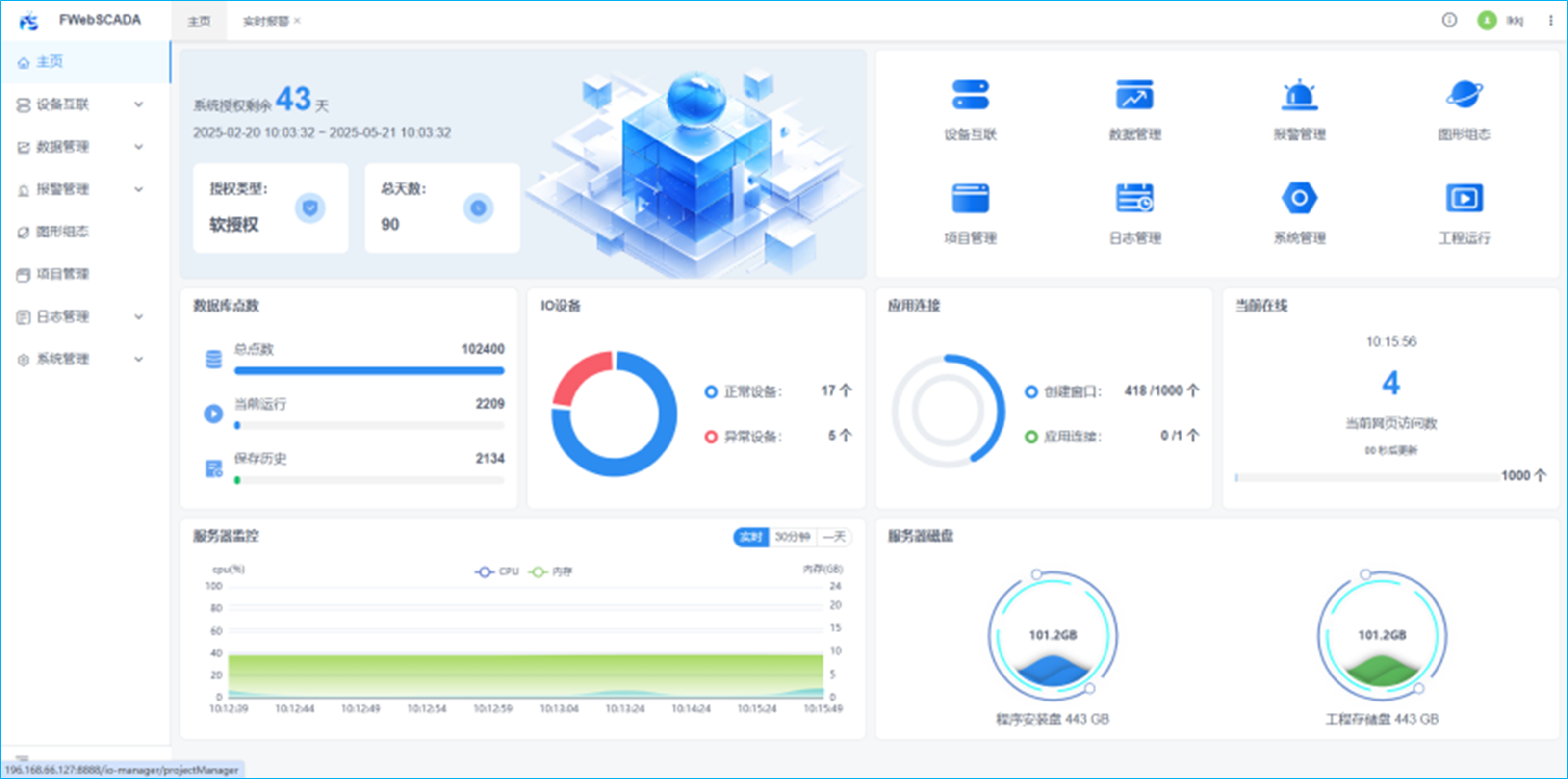 FWebSCADA 采用采集 + 存儲 + 服務 + 平臺一體化設計。一體化部署設計大大降低采集、存儲、服務之間的傳輸延時,降低運維成本,提高安全性。一體化采集可實現設備層數據的高度集中,消除信息孤島,可貫穿控制層、存儲層和監視層的數據和邏輯鏈路,實現跨層級的功能協作和數據共享。