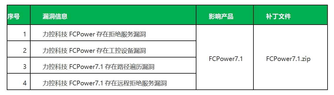 2023年至2024年,國(guó)家信息安全漏洞共享平臺(tái)(CNVD)與工業(yè)和信息化部網(wǎng)絡(luò)安全威脅和漏洞信息共享平臺(tái)工業(yè)控制產(chǎn)品安全漏洞專(zhuān)業(yè)庫(kù)(NVDB平臺(tái)CICSVD漏洞專(zhuān)業(yè)庫(kù))通報(bào)我公司產(chǎn)品電力版組態(tài)軟件FCPower的漏洞信息,我公司高度重視產(chǎn)品安全,積極完成相關(guān)漏洞的修復(fù)工作,并發(fā)布相應(yīng)補(bǔ)丁程序。現(xiàn)對(duì)截止目前出現(xiàn)的漏洞進(jìn)行整理,詳細(xì)漏洞信息如下所示: