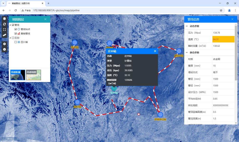 力控在線 GIS 基于先進的技術架構,可依據用戶授權獲取的在線地圖資源,靈活開展二次組態工作。在地圖上,不僅能夠依據經緯度精準實現可視化站點標注、細致完成管線繪制,還能實時展示具體標注項的動態數據,全方位呈現生產現場的實時信息。