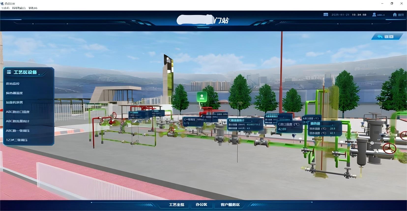 依托一體化管控平臺的強大數據接口能力,系統可一鍵接入力控 SCADA 的實時數據與歷史數據,實現三維模型與底層數據的動態綁定。設備運行狀態、工藝參數、報警信息等關鍵指標能夠在 3D 場景中實時驅動、動態刷新,確保監控畫面與現場同步,為精準決策提供可靠依據。