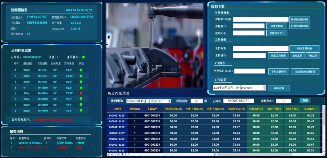 能夠采集車輛標識(VIN)、控制器信息、工具數據、參數集、作業信息、擰緊結果及報警等關鍵數據,覆蓋大部分擰緊工況,為后續擰緊質量追溯與工藝優化提供可靠的數據基礎。