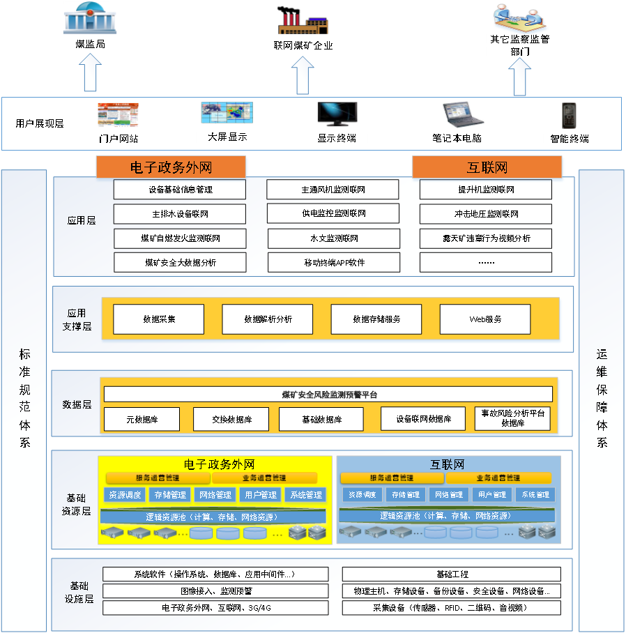 煤礦安全風險監測預警系統以遠程煤礦安全實時監測監控為主,集安全信息采集、采掘位置動態跟蹤、隱患警告、事故報警、安全監管、安全調度等功能為一體的計算機信息網絡系統,能夠將現有不同時期、不同種類、不同技術的安全生產監測監控系統和新建的系統整合在統一的平臺上,使從企業的生產環節到政府的監督管理機構都能及時得到安全生產的信息,協助將安全生產監督管理工作落到實處。系統擁有強大的用戶管理功能、網絡數據實時傳送良好的兼容性、方便的可擴展性等眾多優點。