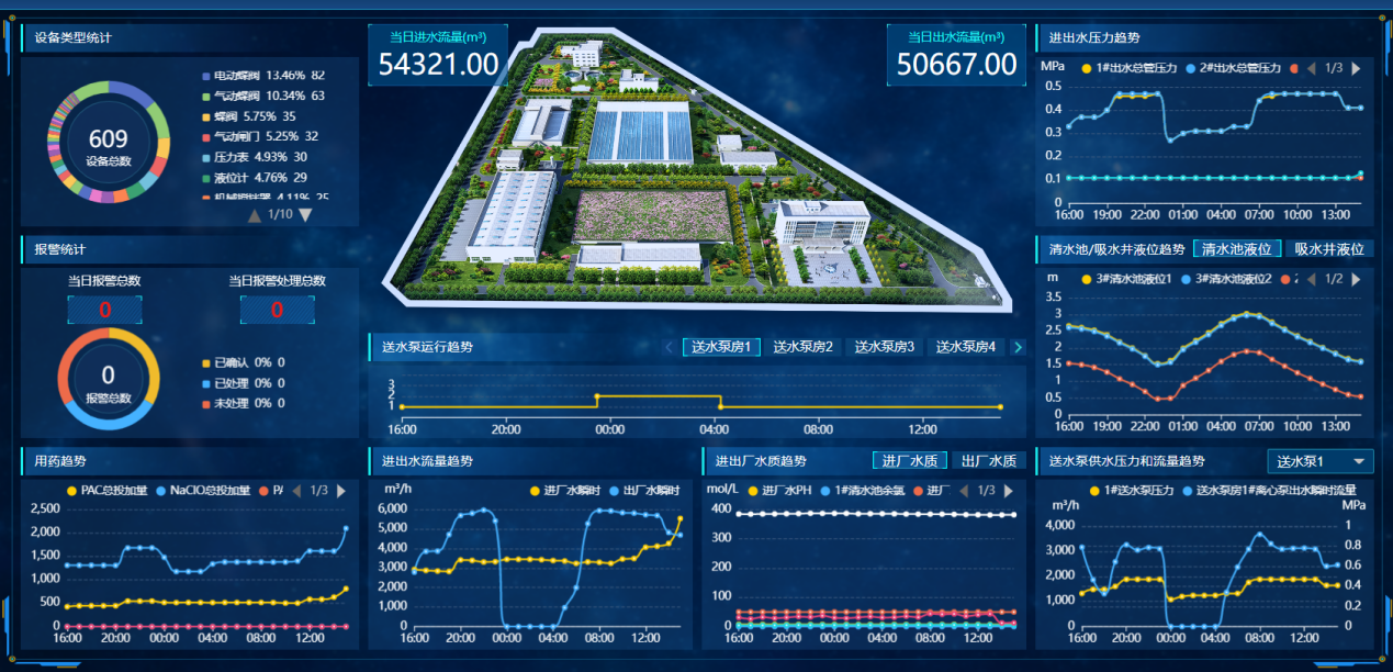 實現集團水生產、水處理、水利用等全生產流程監控,優化供水調度,記錄并優化給排水調度;