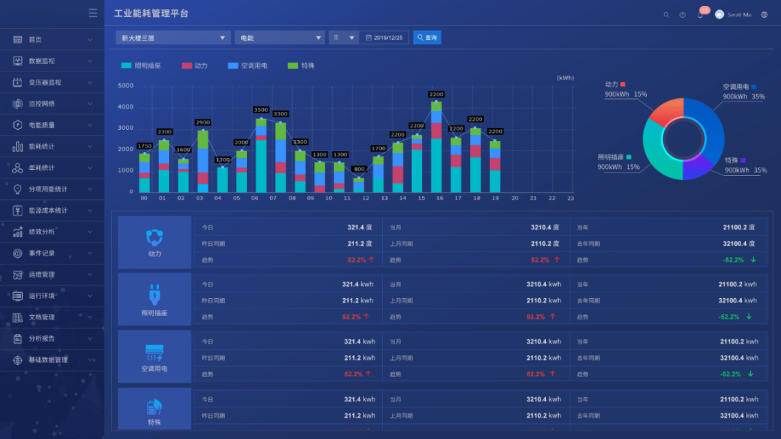 標準偏差:系統自動計算每臺儀表、每介質管網、主輔比對指標期間內最大值、最小值、平均值、標準偏差等,根據實時數據自動與上述值比較給出該儀表期間運行平穩性狀態及報警信息。用戶設置不同運行監測模型開展數據比對,用戶可對模型進行靈活調整或補充,支持用戶自定義靈活組態。 預測預警:根據物料、能源計量網絡流程圖、物料計量數據、能耗計量數據以及裝置模型建立全廠生產管網跑冒滴漏預測和預警分析模型庫,預測預警算法庫。 數據統計分析:自動生成各類計量統計報表。通過數據統計分析,可以清晰了解企業物料移動、管網平衡情況,進而真實反應企業生產情況和經營情況,對企業操作起到一定的監督作用,同時為企業領導及時提供詳實的生產數據,在生產上起到了一定的指導作用。