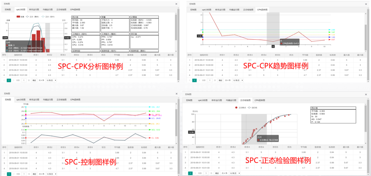 * SPC分析功能:可自動采集質量檢測數據,或人工導入質量數據做SPC質量分析,新增SPC質量分析模塊,讓產品的生產過程數據記錄在檔,強大的分析功能讓質檢人員只需選擇導入已過濾的樣本數據,即可分析出產品的優劣,大幅縮短質量分析的時間,時間縮短 87% 以上。 * CPK分析功能:對質量檢測項目和數據進行CPK計算和分析,自動算出在記錄設備的CPK匯總值,時間縮短50%以上。 * 膜厚、折射率抽檢數據采集及分析:統計分析抽檢膜厚、折射率的電池片數量、質量檢測數據,減少人工50% 。
