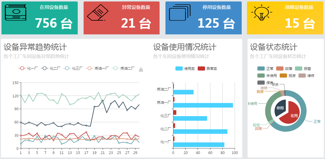對現(xiàn)場所有的設(shè)備做管理,實現(xiàn)生產(chǎn)設(shè)備從啟用、建檔、維護保養(yǎng)、檢維修、檢定、停用、報廢等全生命周期的管理。記錄設(shè)備的生命周期、使用周期、保養(yǎng)周期、點檢周期、維修記錄等信息,提供設(shè)備的稼動率、設(shè)備實時狀態(tài),讓設(shè)備的全生命周期和設(shè)備的實時信息以最直觀的形式展現(xiàn)在管理人員面前,便于管理人員對設(shè)備做計劃和管理,提高設(shè)備的使用效率;
