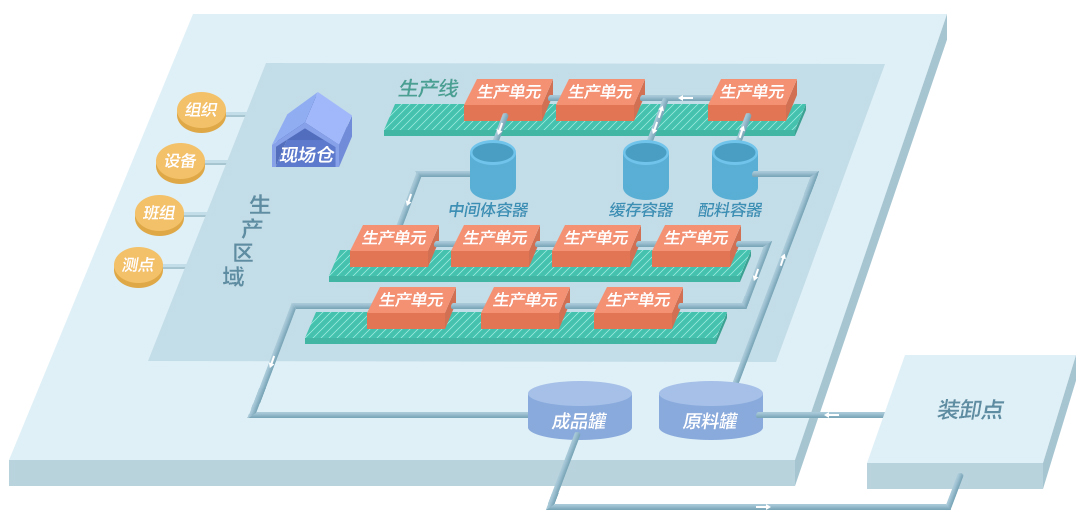 建立基于工廠生產(chǎn)的數(shù)據(jù)基礎(chǔ)模型,實(shí)現(xiàn)生產(chǎn)裝置、計(jì)量點(diǎn)、物料、裝卸點(diǎn)、儲罐、倉庫、生產(chǎn)節(jié)點(diǎn)、測點(diǎn)、班次工廠基礎(chǔ)信息模型組態(tài),來支撐MES系統(tǒng)中各生產(chǎn)業(yè)務(wù)功能模塊。 需通過工廠建模對工廠生產(chǎn)所涉及的人員信息、班組信息、物料信息、裝置信息、儲罐信息、進(jìn)出廠點(diǎn)、計(jì)量點(diǎn)等生產(chǎn)元素進(jìn)行定義和規(guī)范化管理,以信息化手段構(gòu)建工廠生產(chǎn)重要主數(shù)據(jù)。 工廠模型從生產(chǎn)裝置、計(jì)量點(diǎn)、物料、裝卸點(diǎn)、儲罐、測點(diǎn)、生產(chǎn)節(jié)點(diǎn)、能源節(jié)點(diǎn)、班次、路由多維度構(gòu)建工廠主數(shù)據(jù)模型,來支撐上層應(yīng)用業(yè)務(wù)。