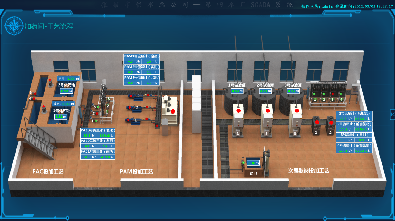 進行綜合數據共享,按工藝聯鎖控制邏輯進行控制,優化供水調度細節,記錄調度過程,,可以迅速了解生產全局;