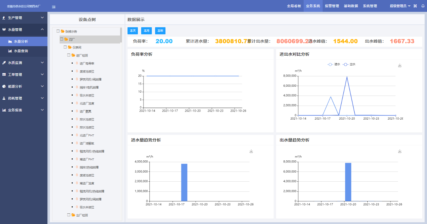 對水廠水處理量進行實時統計,管理人員可以通過曲線或報表等形式了解水廠在不同時間段或日期生產數據。