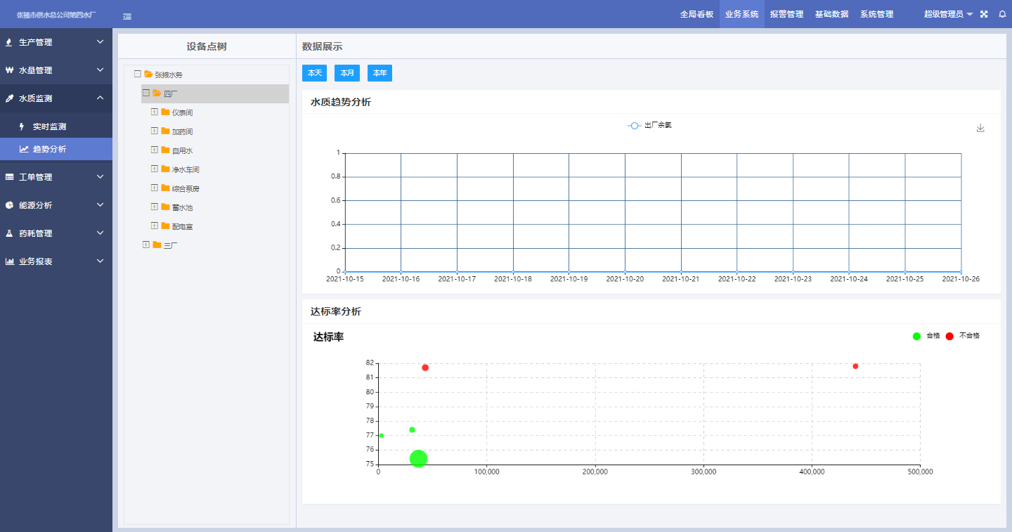 針對水廠生產過程和生產質量報警的智能化管理,使管理人員可以第一時間了解生產中出現的異常。