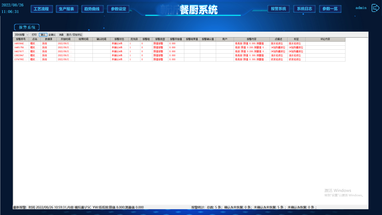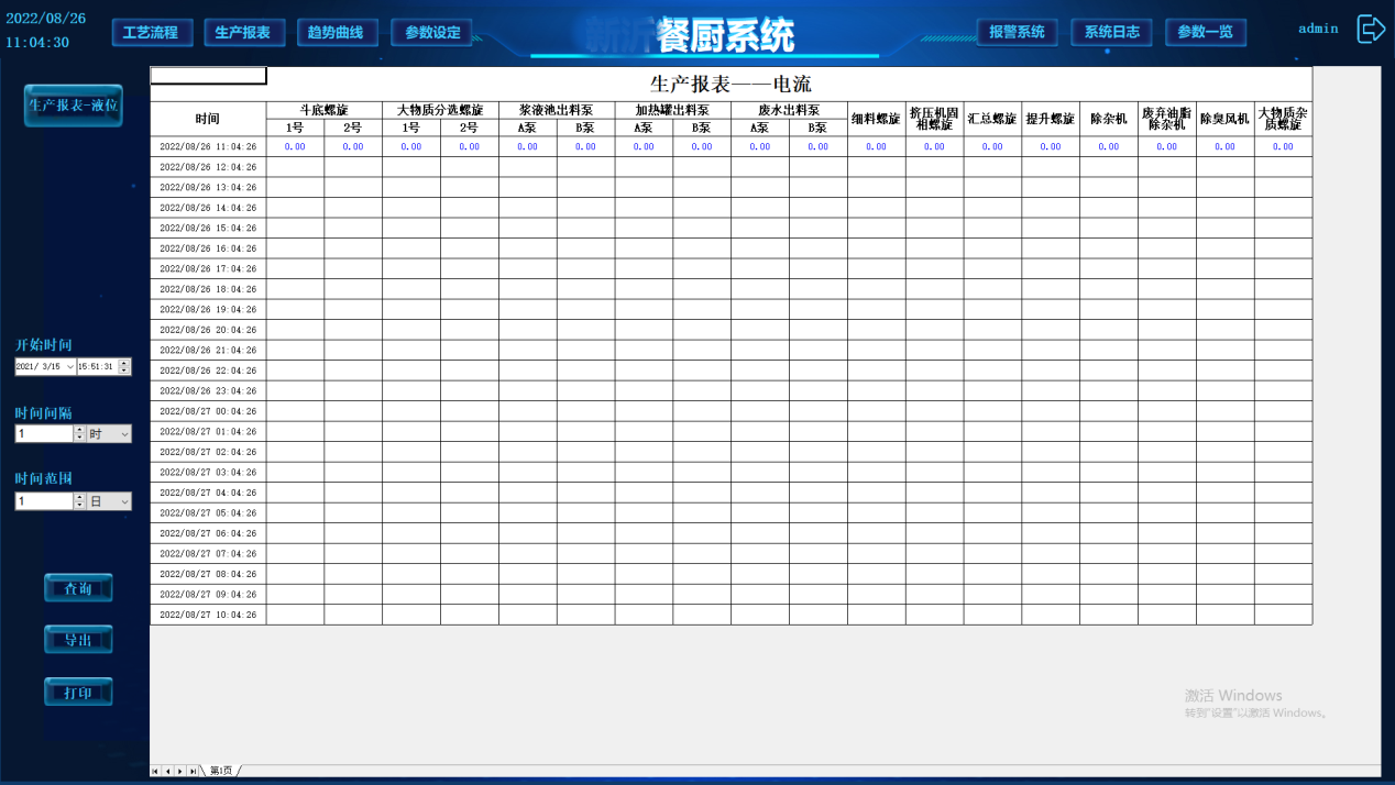 系統(tǒng)自動(dòng)記錄各種工藝運(yùn)行數(shù)據(jù),將所有數(shù)據(jù)歸納匯總形成報(bào)表,報(bào)表可定時(shí)打印或召喚打印,操作員也可通過菜單或按鈕進(jìn)入報(bào)表畫面查看歷史報(bào)表。