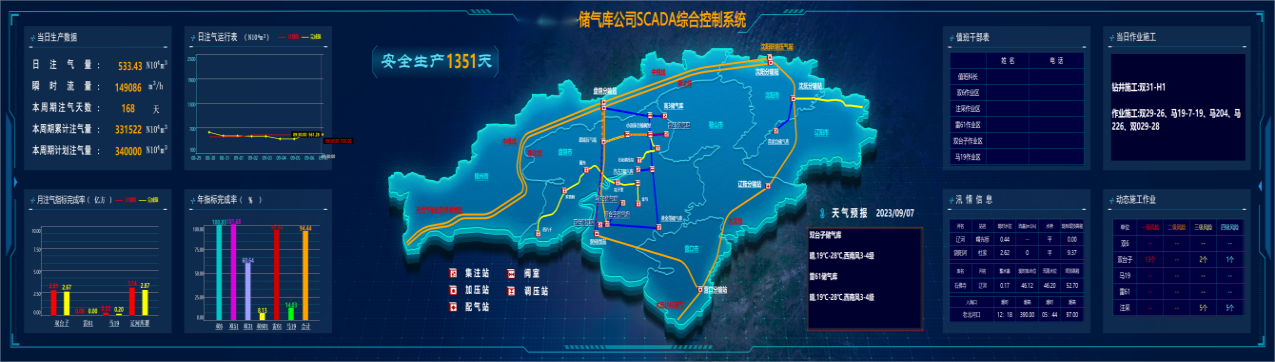 儲(chǔ)氣庫SCADA系統(tǒng)將多個(gè)儲(chǔ)氣庫作業(yè)區(qū)數(shù)據(jù)和注采站數(shù)據(jù)全部接入同一平臺(tái),實(shí)現(xiàn)集中查看、管理,遠(yuǎn)程控制、報(bào)表數(shù)據(jù)生成、報(bào)警展示及設(shè)置、曲線趨勢(shì)查詢、用戶管理查詢等功能,實(shí)現(xiàn)公司級(jí)對(duì)儲(chǔ)氣庫作業(yè)區(qū)級(jí)整體數(shù)據(jù)監(jiān)控,綜合提升了儲(chǔ)氣庫公司管理和生產(chǎn)運(yùn)維能力。